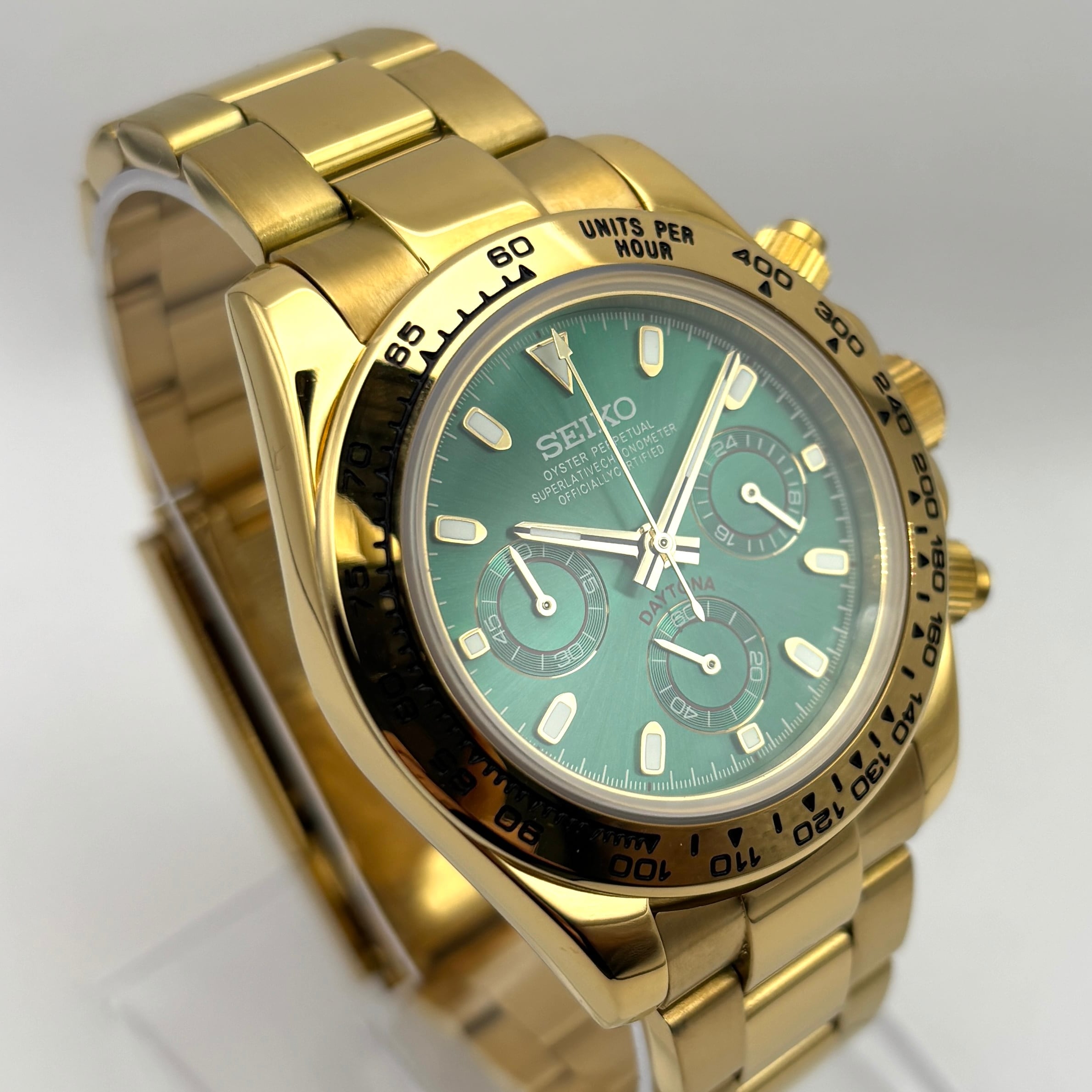 アイコニックなデイトナのデザインにインスパイアされ、セイコーのクオーツムーブメントVK63を搭載したセイコーMODデイトナ。 卓越した技術と使いやすさの完璧な融合を実現した、40mmのハイエンド・クオリティ・ウォッチです。